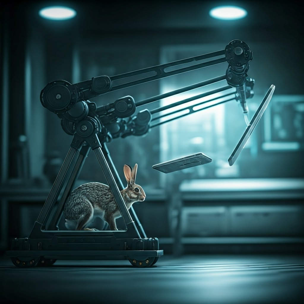In a cold, sterile laboratory, where the hum of machines never ceased, a small white jackrabbit sat alone in a wire cage. Its pink eyes darted nervously, ears twitching at every sound. The scientists called him Subject 47, but he knew himself as Snow. The lab was a maze of blinking lights and echoing footsteps, but worst of all were the voices.